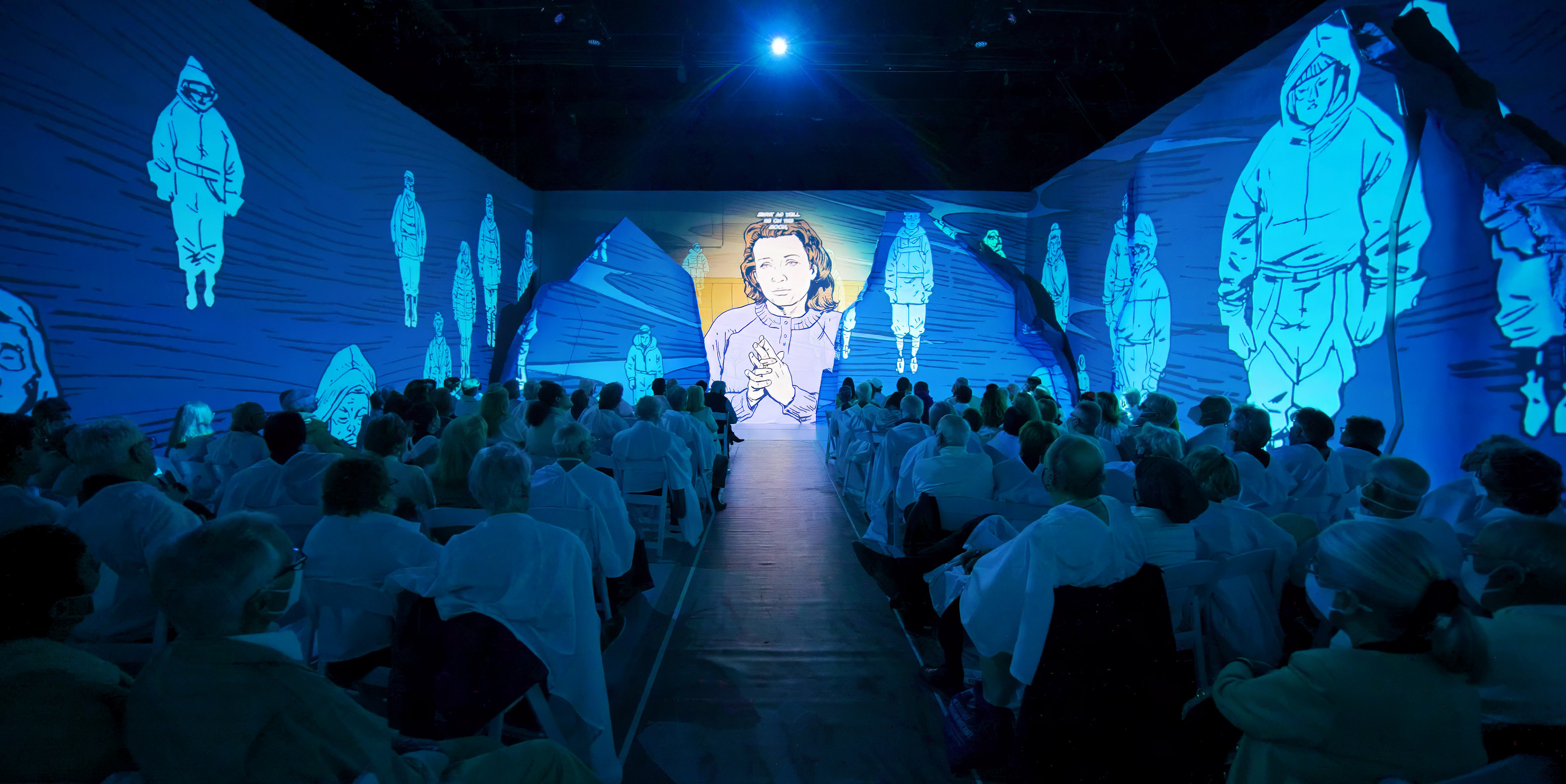 "What’s immersive opera? Opera Parallèle’s ‘Everest’ offers one worthy answer... Inside the playing space, each of whose four walls is a projection screen, the value of an all-white palette is clear. The backs of the other audience members you’re seated behind start to look like foothills to the peaks on the walls, which aren’t flat surfaces; some peaks are jagged cutouts in front of the walls, creating a dynamic surface on which Mark Simmons’ illustrations and David Murakami’s projection design can play. As wind squalls and mountaineering equipment clangs in the pre-show soundscape, with small globes of snowflakes projected onto audiences’ clothing, you might start to shiver involuntarily... “Everest” gives rare proximity, even immersion into, the human vocal apparatus. When characters describe what they see — “I looked up and saw three suns” — or confess their fears or reflect, it’s as if you’re inside their larynges. So intricately textured is the sound that you can almost picture individual vocal cords, how wet or dry they are." SF Chronicle
